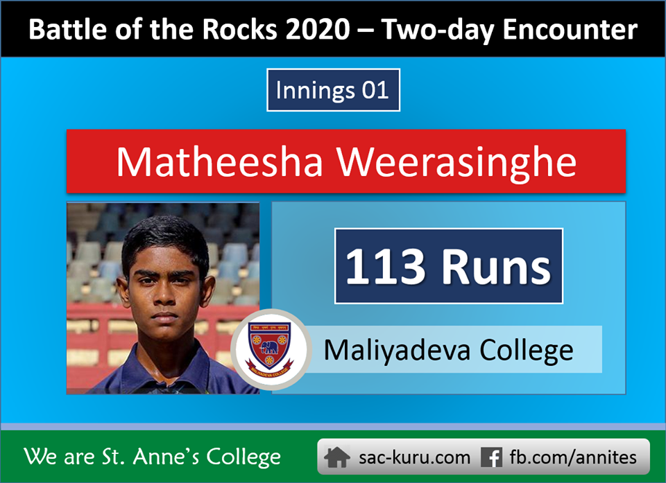 Matheesha of Maliyadeva College is the star today with his magnificent century.
