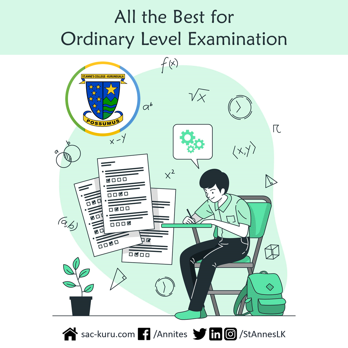 Dear students, behold this golden opportunity, the GCE Ordinary Level Exam, that awaits you—a chance to unveil the depths of your true potential. Let not fear befall you, for within the realm of Possumus, there lies an unwavering belief that propels you to conquer any challenge that dares to stand in your way. Embrace this moment, for you possess the power to surpass all expectations. You can do it, boys! We at St. Anne's College, wish you all the best. Show the strength within you and make us proud!