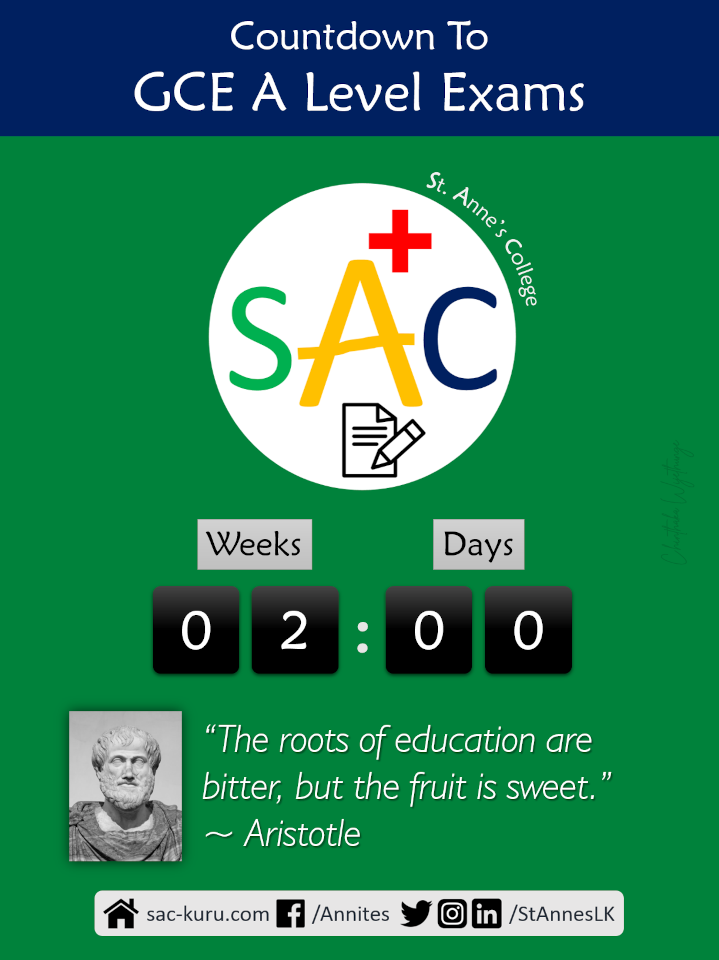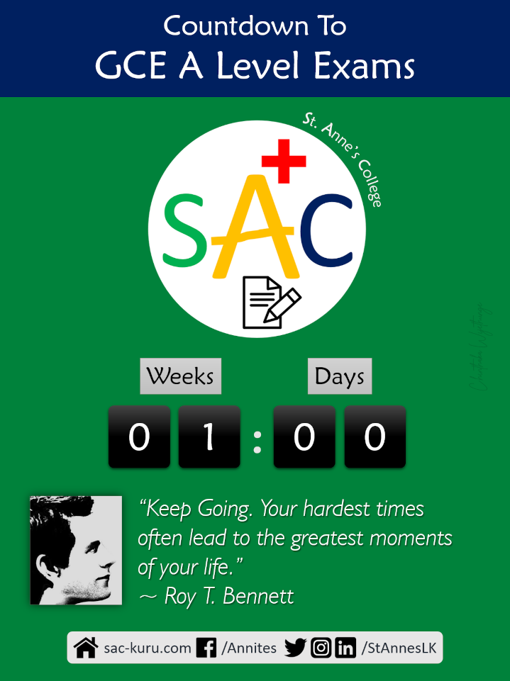 You have come this far, just one more hurdle to win the ultimate prize of your College life. Your opportunity has arrived at your doorstep as the Advanced Level Examination begins tomorrow. You can do it, boys! We wish you all the very best.