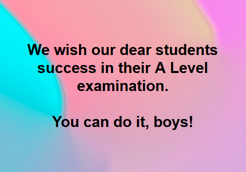 Best wishes to all of our dear students for the GCE ALevel Exam. You can do it, boys!